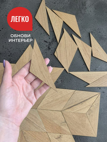 Декор на стену треугольники, дуб крафт золотой, 60 шт, мозаика - панно на стену.