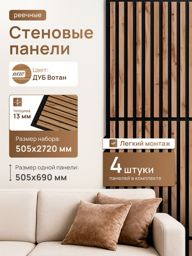 Стеновые панели реечные МДФ ДУБ ВОТАН на черном, декоративные рейки на стену 690х505 4 шт 1,4 кв.м