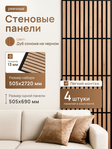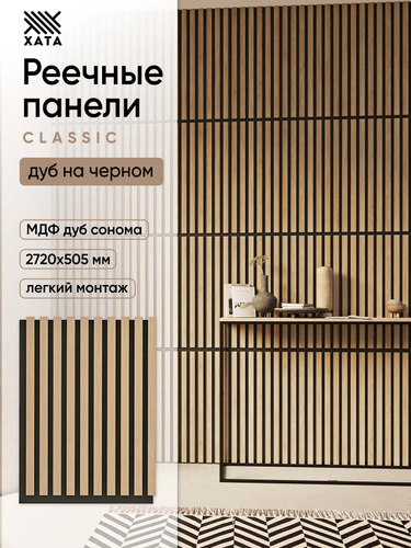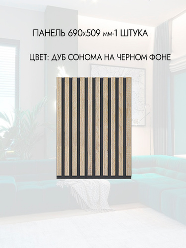 Стеновые реечные панели МДФ Дуб Сонома на черном, декоративные рейки на стену 1.36 кв.м