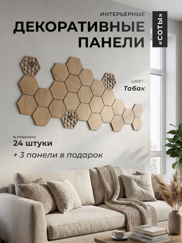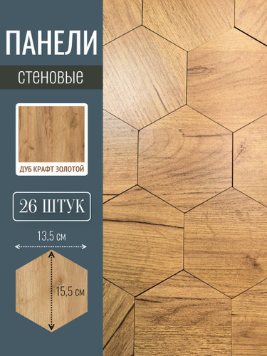 Декор на стену - соты (шестигранники), дуб крафт золотой, 26 шт. (0,4 м2)
