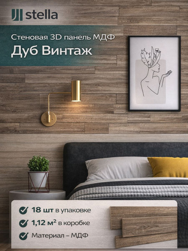 Стеновая 3D панель мдф Дуб Винтаж, для кухни, для стен и комнаты; (упаковка 18 штук)