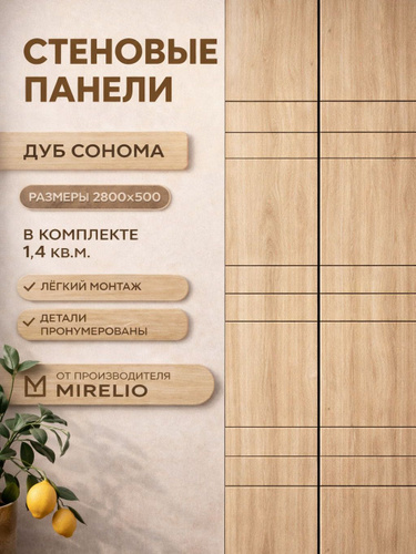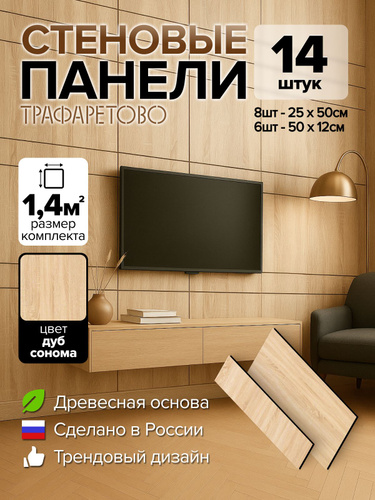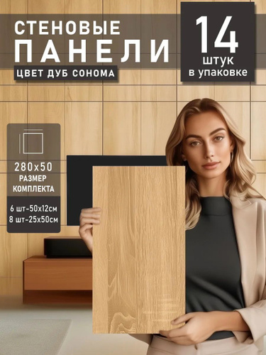 Стеновые панели, декоративные панели на стену дуб Сонома 500х250 мм 8 шт, 500х125 мм 6 шт, 1,4 кв.м