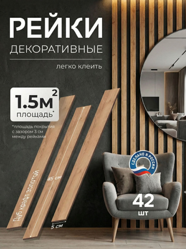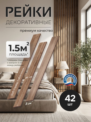 Рейки декоративные на стену, стеновые панели реечные, табачный дуб, 40 шт, размер рейки 50х5 см, 1 кв. м.