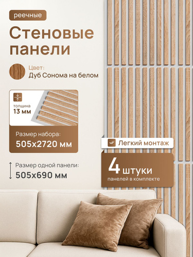 Стеновые панели реечные МДФ Дуб Сонома на белом, декоративные рейки на стену 690х505 4 шт 1,4 кв.м