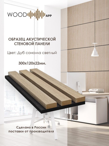 Образец акустической декоративной панели Wood App Дуб Сонома светлый