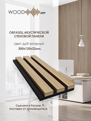 Образец акустической декоративной панели Wood App Дуб Янтарный
