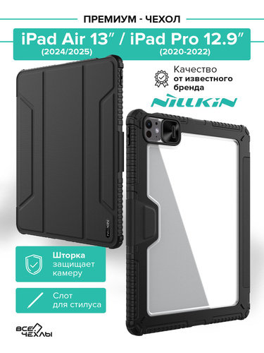 Чехол книжка от Nillkin для планшета iPad Pro 12.9 с 2020 года и iPad Air 13 с 2024-, серия Bumper Pro, с задней шторкой для камеры