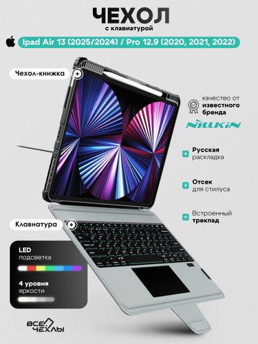 Чехол для iPad Air 13 (2024 / 2025), iPad Pro 12.9 (2020 / 2021) Nillkin Combo Keyboard/Чехол с клавиатурой