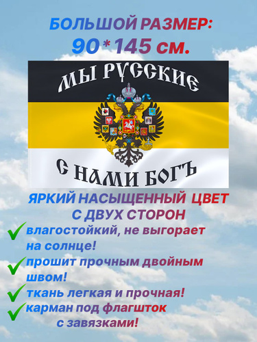 ФЛАГ РОССИЙСКОЙ ИМПЕРИИ Большой / Имперский / Мы Русские с Нами Бог /