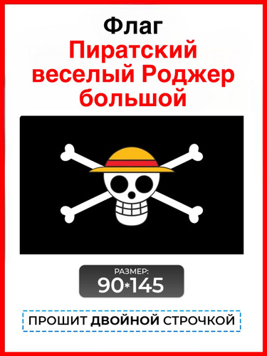 Флаг капитана Луффи , 90x150 см, без флагштока, ван-пис большой на стену