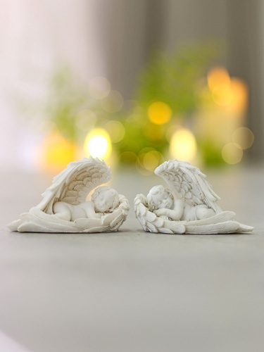 Фигурка полистоун Белоснежный ангелочек, спящий в крыльях , 4 6.5 2.5 см, МИКС