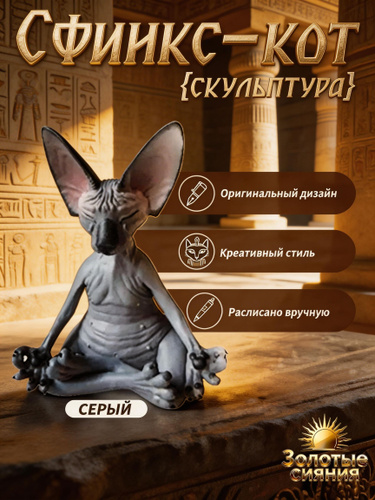 Статуэтка кота Сфинкса в позе лотоса для медитации лысый кот-йог будда интерьерный декор