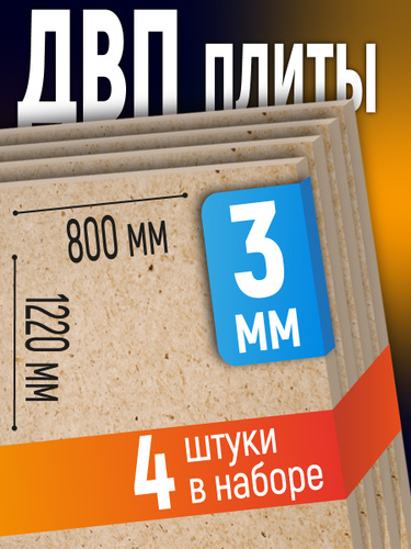 ДВП (4шт) 3мм 600х1220 оргалит мебельный лист,для выравнивания стен, пола, ремонта, декора