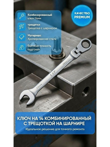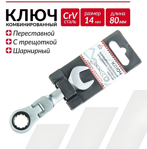 Ключ гаечный на 14 мм комбинированный с трещеткой на шарнире "LIT" CrV 56103