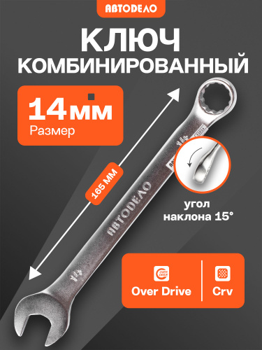 Ключ комбинированный гаечный АвтоDело двусторонний накидной / рожковый, 14х14 мм, 16.5 см