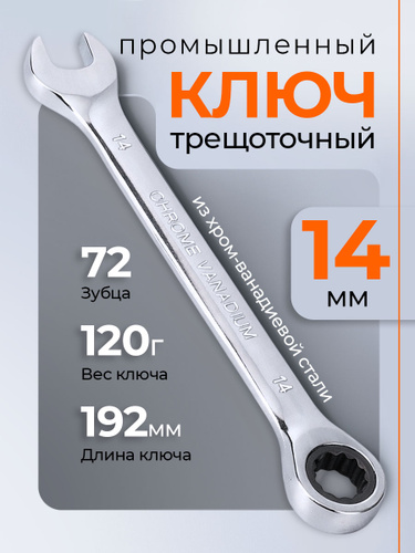 Гаечный ключ с трещоткой 14 мм накидкой, рожковый