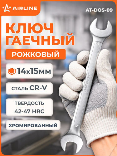Ключ рожковый 14x15мм PRO, для автомобиля, ремонта сантехники, механических работ, профессиональный инструмент AIRLINE AT-DOS-09