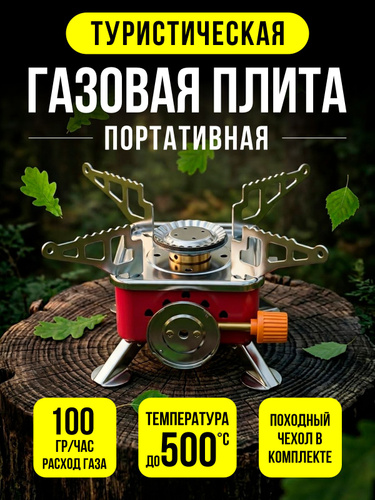 Газовая горелка плита с пьезоподжигом, туристическая, походная, в удобном чехле