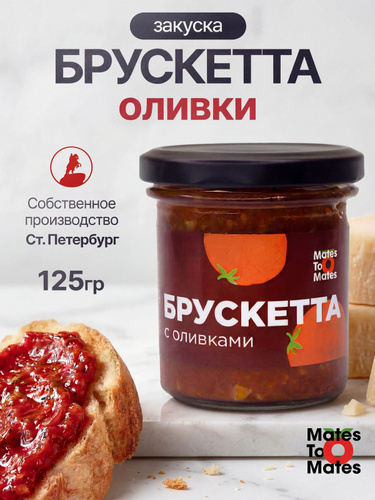 Брускетта 125г, закуска к вину из вяленых томатов и оливок, с кешью и пряностями