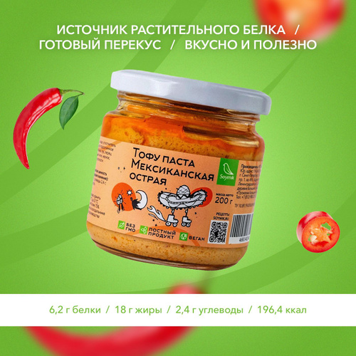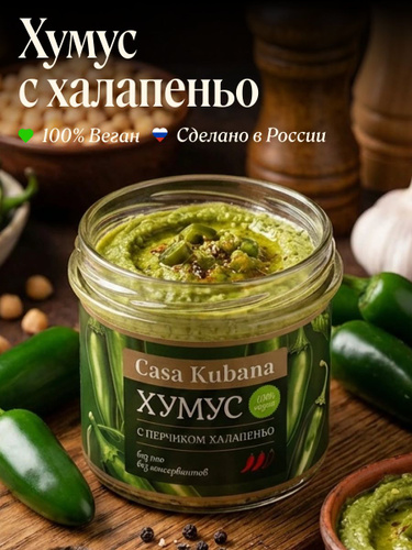 Хумус с перчиком халапеньо, Casa Kubana 90г, веганская закуска, намазка для бутербродов