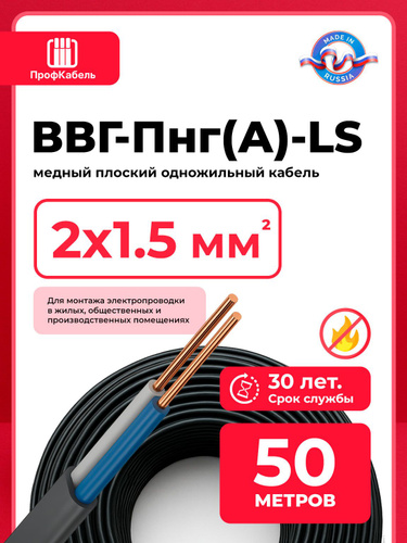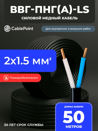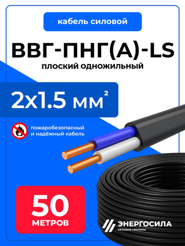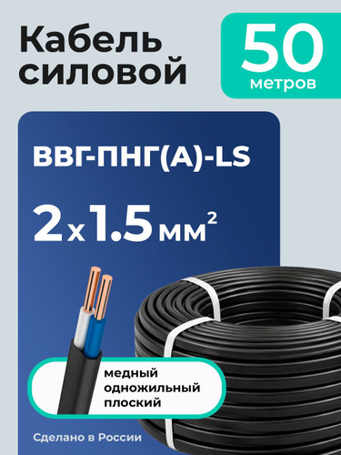 Силовой кабель ВВГ-Пнг(А)-LS 2 x 1.5 мм², 50 м