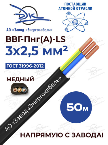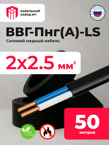 Силовой кабель ВВГ-Пнг(А)-LS 2 x 2.5 мм², 50 м, 3200 г