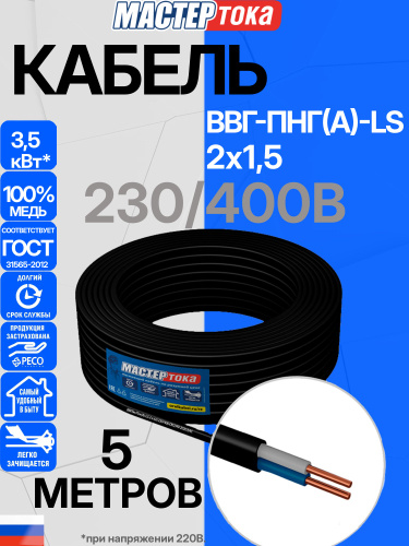 Кабель силовой ВВГбм-Пнг(A)-LS 2х1,5 5 метров Мастер Тока