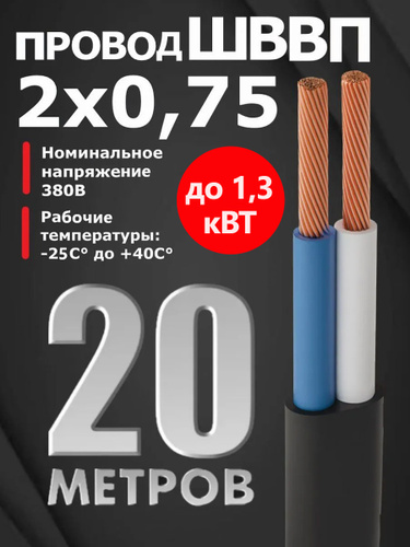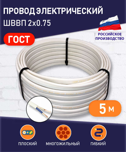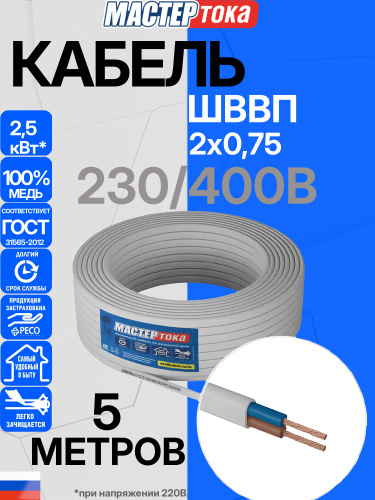 Провод электрический ШВВП 2х0,75 медный 5 метров Мастер Тока