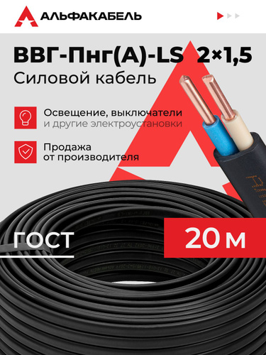 Силовой кабель ВВГ-Пнг(А)-LS 2 x 2.5 мм², 20 м, 1932 г