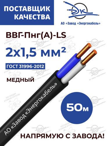 Кабель ВВГ-Пнг(А)-LS 2x1,5ок(N)-0,66 ТУ 16.К121-018-2011 50м