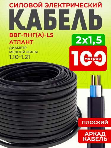 Силовой кабель ВВГ-Пнг(А)-LS 2x1,5 мм 100 м медный