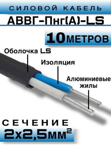 Кабель алюминиевый ГОСТ АВВГ-нг(А)-LS 2х2,5 ок (N)-0,66 10 метров