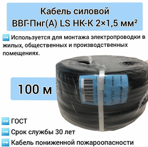 Силовой кабель ВВГ-Пнг(A)-LS 2x1,5 мм2 НК-К, 100 м, в исполнении ТУ, черный