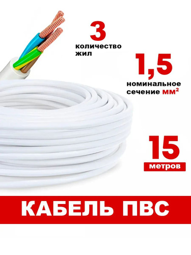 Липаркабель Силовой кабель ПРКС 2 x 1.5 мм², 10 м, 750 г