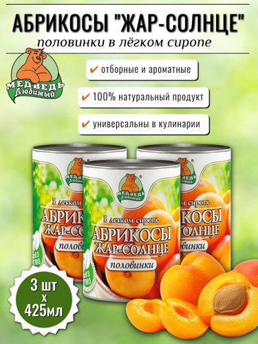 Консервы фруктовые Медведь любимый Абрикосы Жар-солнце 3 шт х 425 мл
