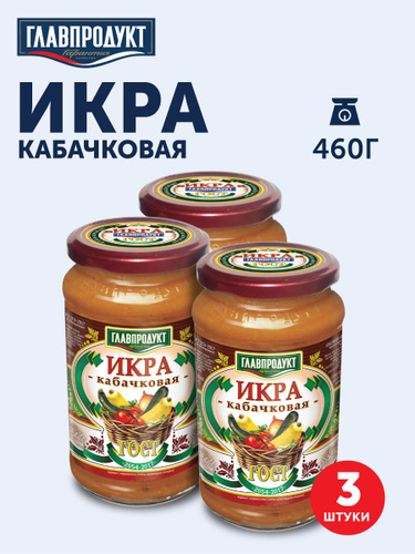 Консервы овощные икра кабачковая обжаренная , ГЛАВПРОДУКТ 460 г x 3шт
