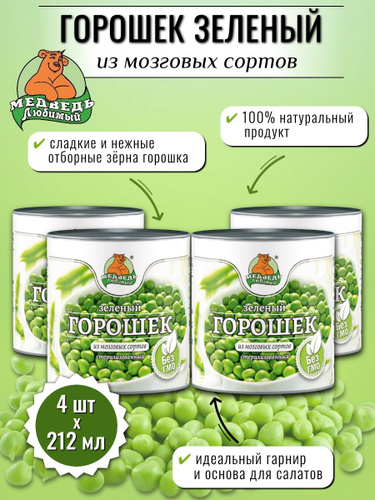 Консервы овощные Медведь любимый Горошек зелёный 212 мл х 4 шт