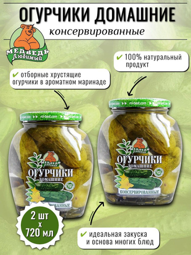 Консервы овощные Медведь любимый Огурчики домашние 720 мл х 2 шт