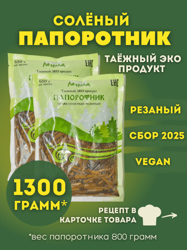Овощные консервы из папоротника, орляк соленый резаный азиатский продукт, 1300 грамм