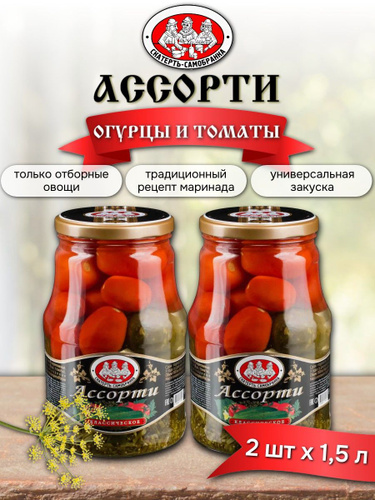 Консервы овощные Скатерть-Самобранка Ассорти Огурцы+Томаты 1,5 л х 2 шт