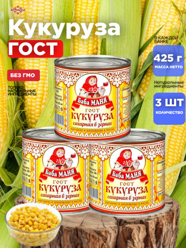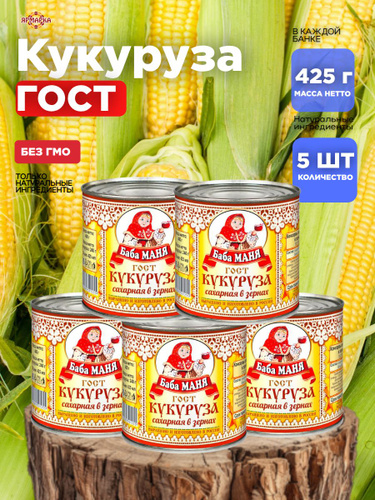 Кукуруза консервы овощные "БАБА МАНЯ" 425мл ГОСТ х5шт