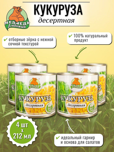 Консервы овощные Медведь любимый Кукуруза десертная 212 мл х 4 шт