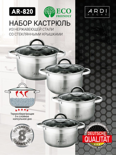 Набор кастрюль с крышкой из нержавеющей стали, ARDI Kuche AR-820, 8 предметов