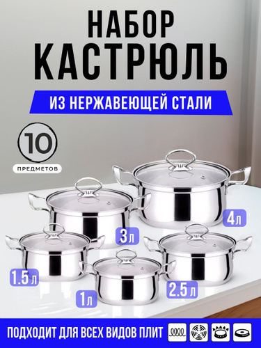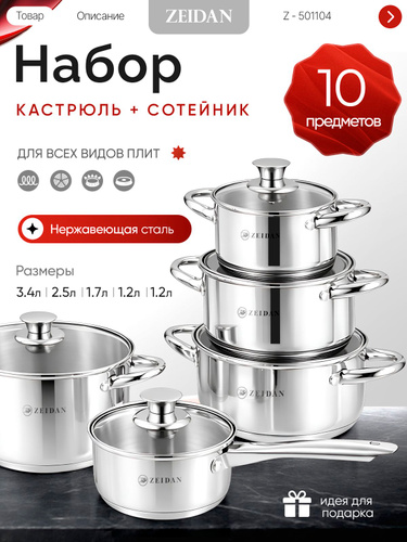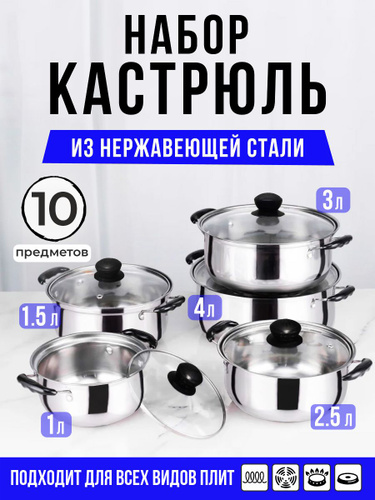 Набор кастрюль из нержавеющей стали с крышкой Zeidan Z-51104 10 предметов, для всех видов плит