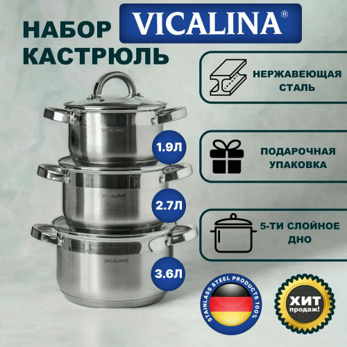 Набор кастрюль с крышкой из нержавеющей стали/ Набор посуды для приготовления VICALINA из 6 предметов