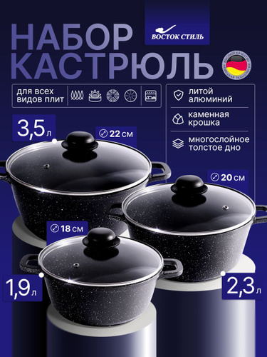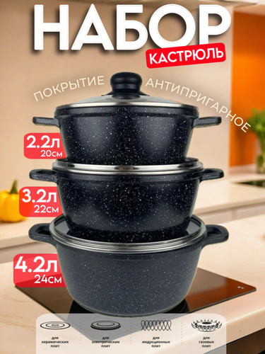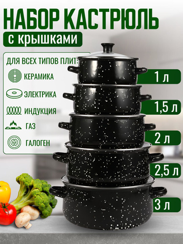 Набор кастрюль с крышкой / для индукционных плит / набор посуды для приготовления / кастрюля эмалированная