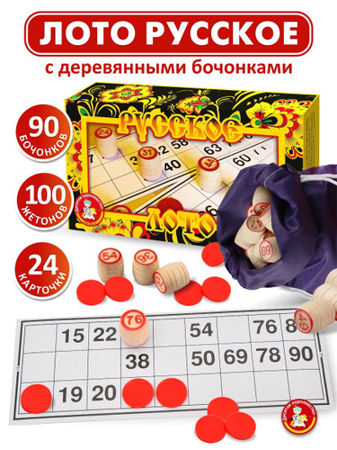 Русское лото игра настольная с деревянными бочонками "Традиционное" (настольные игры для всей семьи с детьми) Десятое королевство