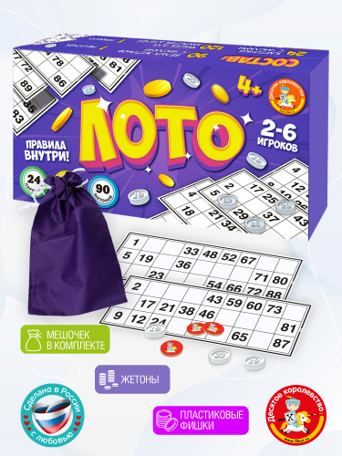 Настольная игра русское лото классическое с пластиковыми жетонами Десятое королевство