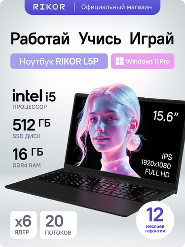 Rikor Ноутбук 15", RAM 16 ГБ, Windows Pro, (0199FB95), черный