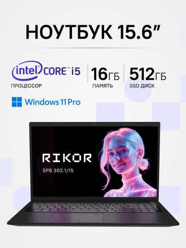 Rikor SPB 302.1 Ноутбук 15.6", Intel Core i5-1155G7, RAM 16 ГБ, SSD 512 ГБ, Intel Iris Xe Graphics, Windows Pro, (0199FB95), черный, черный матовый, Русская раскладка